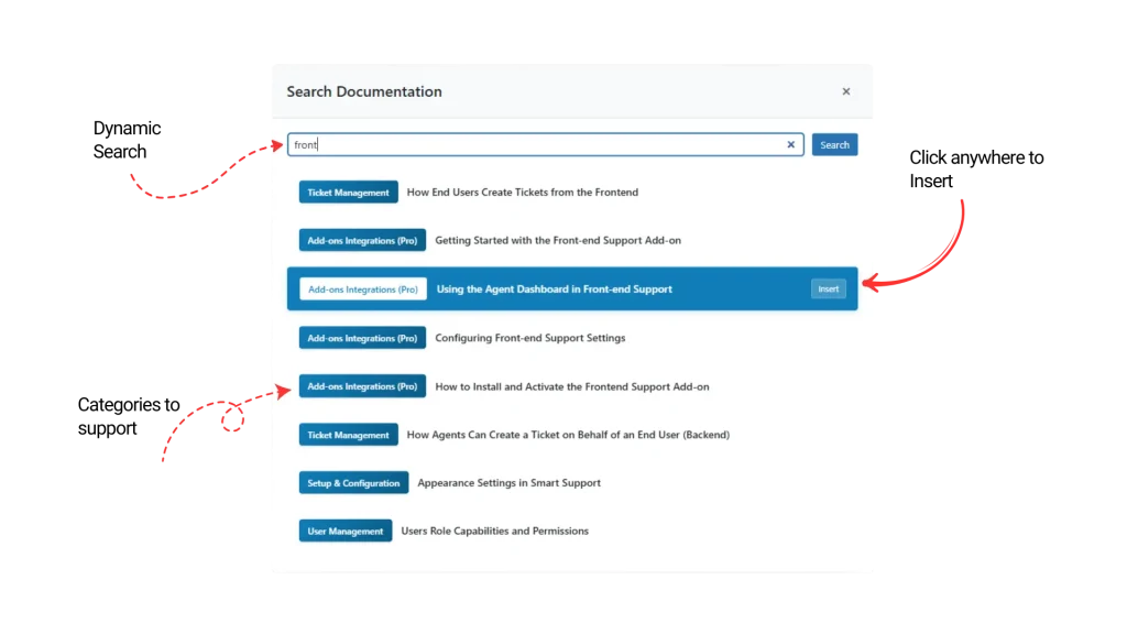 With Smart Support’s Documentation add-on, agents can search and insert knowledge base articles directly into replies. This speeds up support, improves consistency, and encourages customers to use self-help resources in the future.