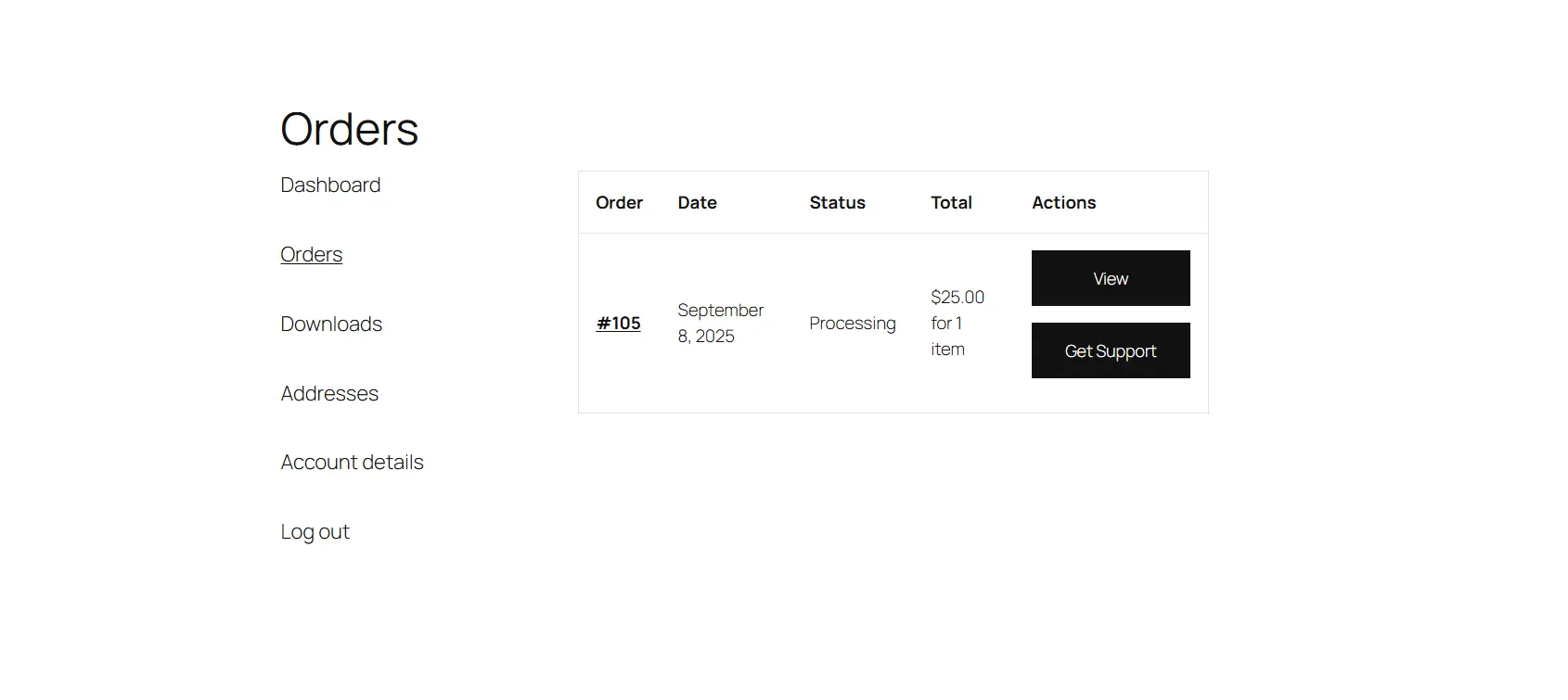 - Under Orders, they will now see a “Get Support” button next to each order.